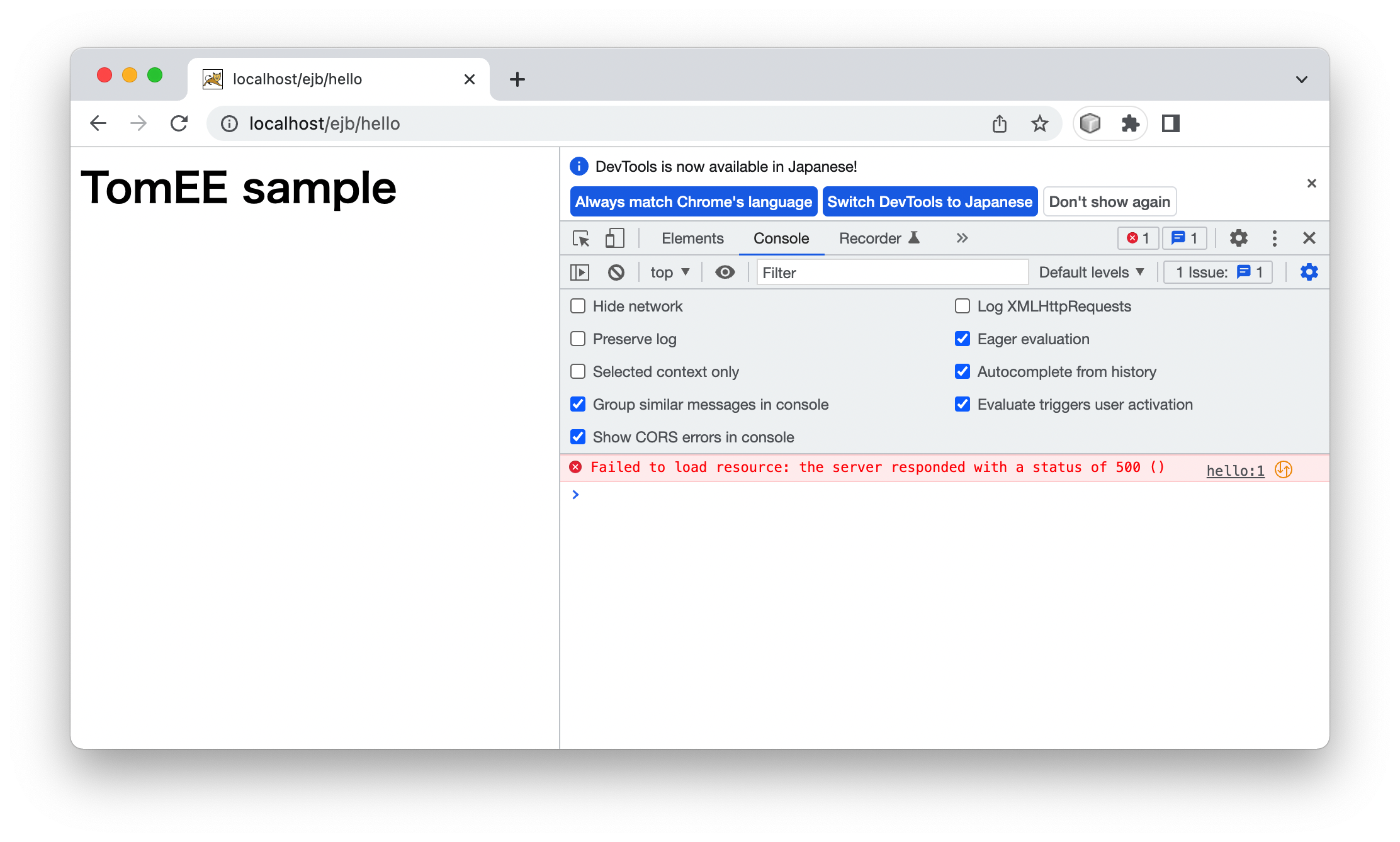 オリジナルは TomEE 9 向けに書かれていたので、TomEE 8 向けに少々手直し。
