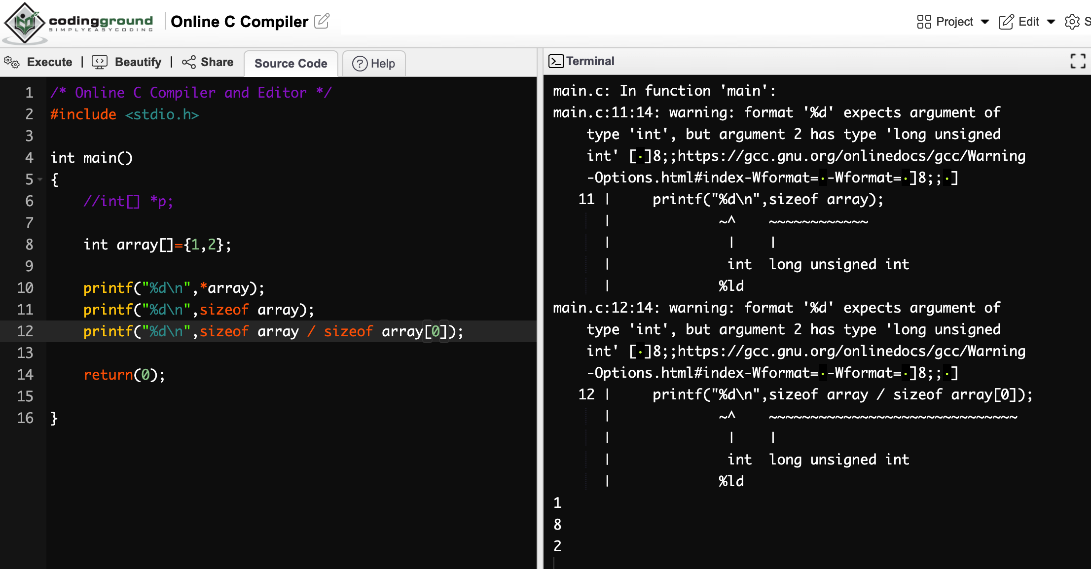 このコードにしても unsigned 絡みでワーニング出てますけどね。