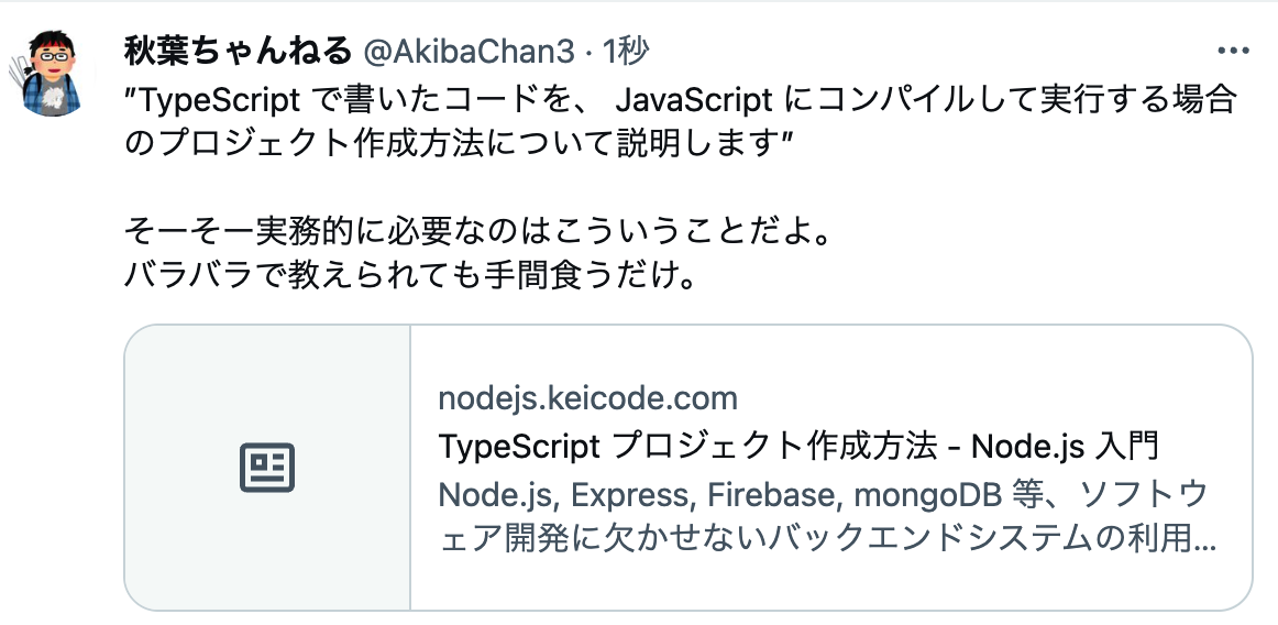 こういうことができる node 環境は素晴らしいと思う。
