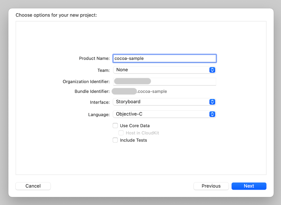 (ただし、現状では開発言語を Objective-C を選択した場合は SwiftUI は選べない。なお、Nib は Next Interface Builder から。Xib の X は XML から)