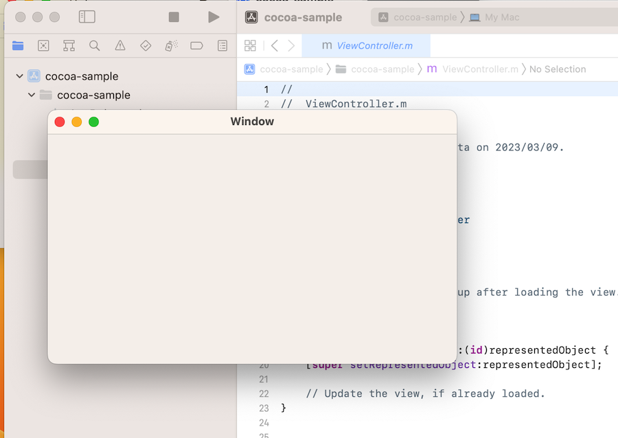 cocoa アプリのプロジェクトを作成したとき、AppDelegate と ViewController に対応するファイルは自動で生成される。